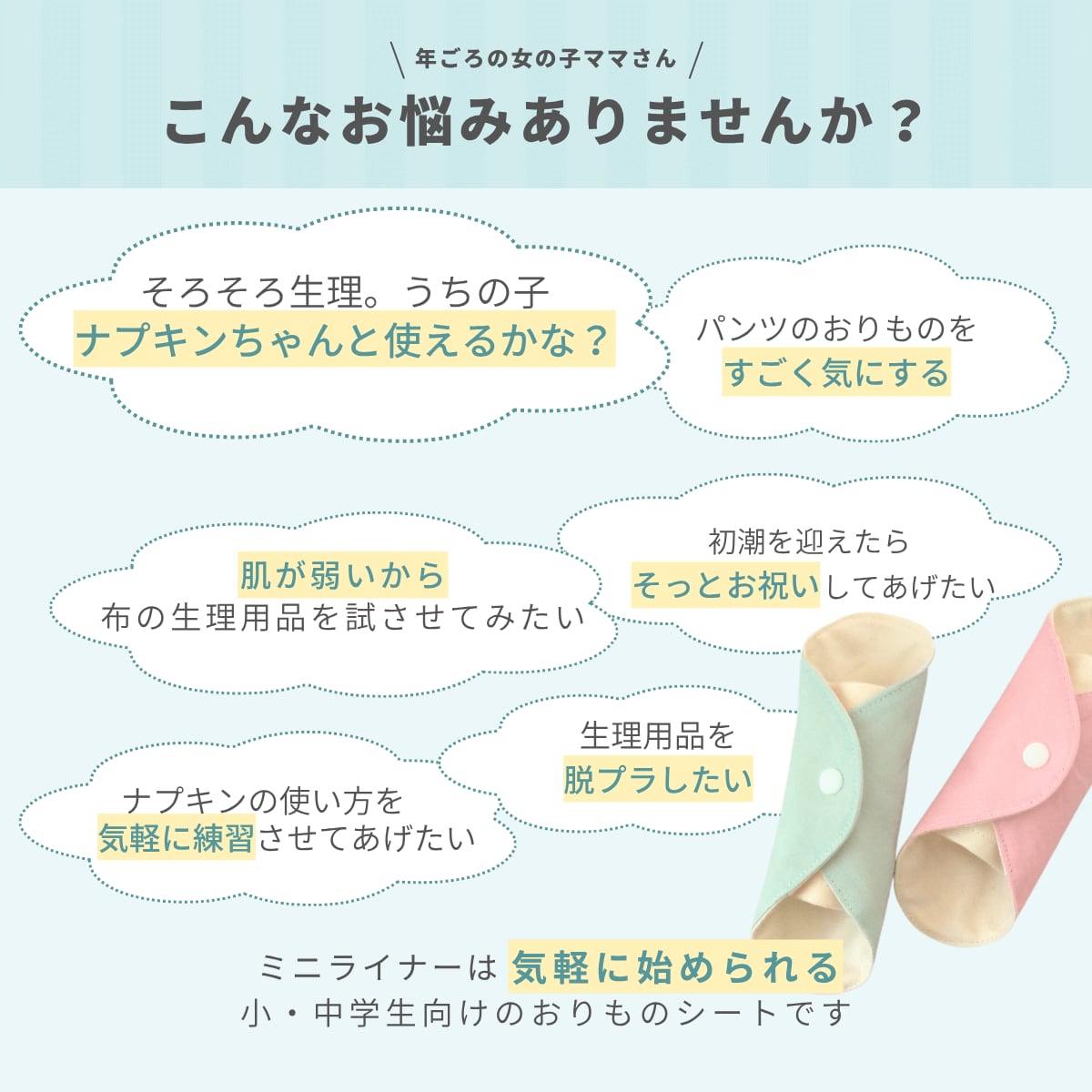 布ナプキン おりもの用 オーガニックコットン おすすめ 子供 中学生 小さい 洗いやすい 乾きやすい ネル ガーゼ 防水布なし 普段使い はじめて モノトーン 日本製 デビューセット かわいい agio