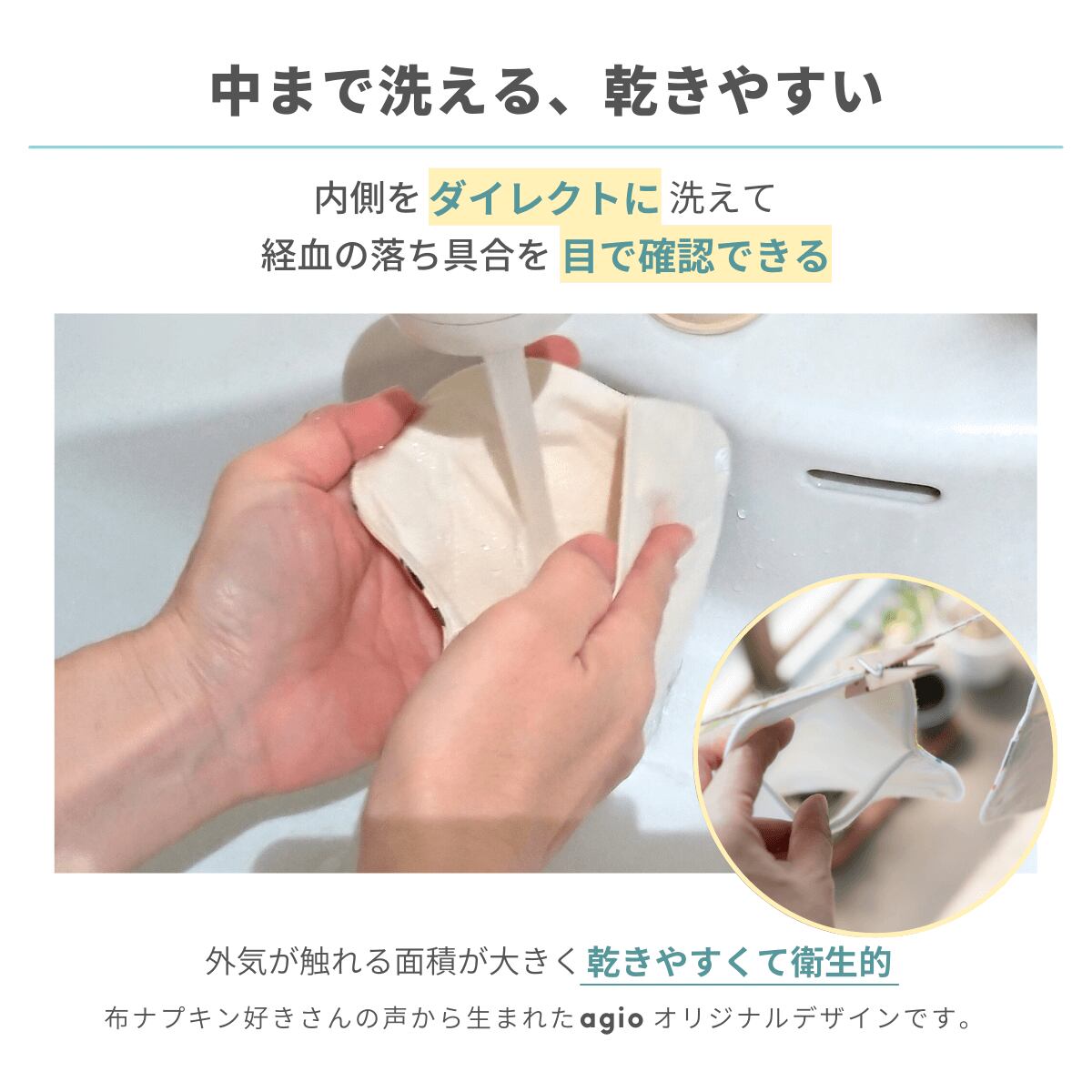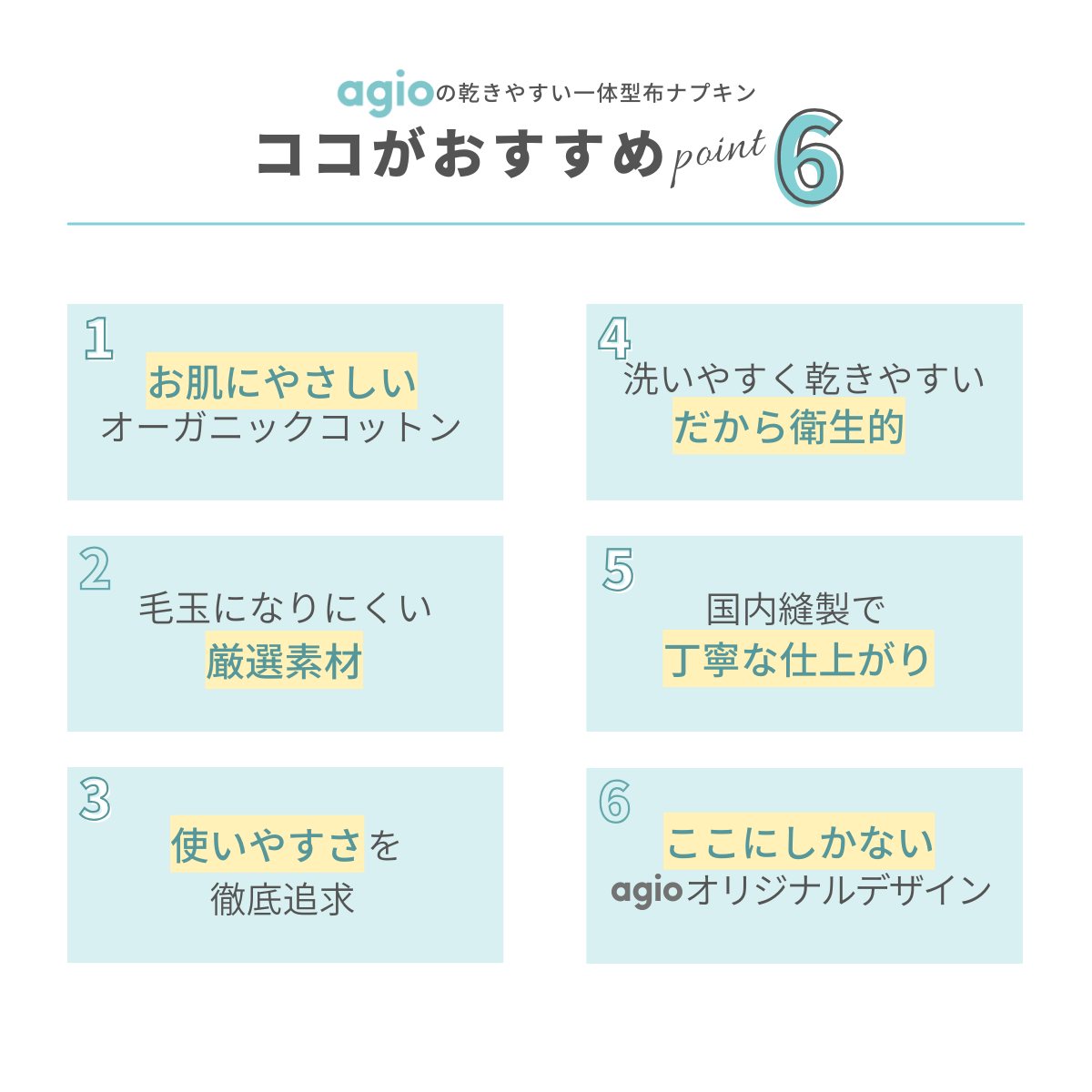 布ナプキン オーガニックコットン 生理用 防水布 防水入り ネル おすすめ 日本製 尿もれ 失禁 少ない日用 シンプル かわいい おしゃれ 初めて 初心者 一体型 送料無料 agio