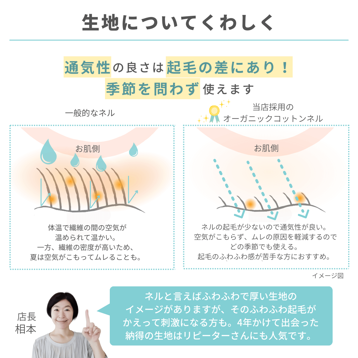 肌面:オーガニックコットンネル(国産・NOCコットン認証生地)